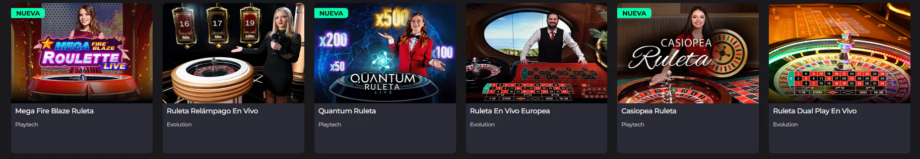 Cubrimos las categorías más populares y los juegos con dinero real más destacados en su formato de juego en vivo. Además, todos corresponden a proveedores de juegos online especializados en este formato para darte una experiencia como si estuvieras haciendo apuestas en un casino físico.